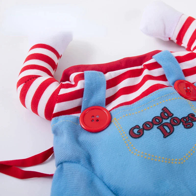 The outfit is designed with the stuffed body and arms and adopts the long sleeve design. There are 2 strings that you can use them to fix to wear for your dogs.