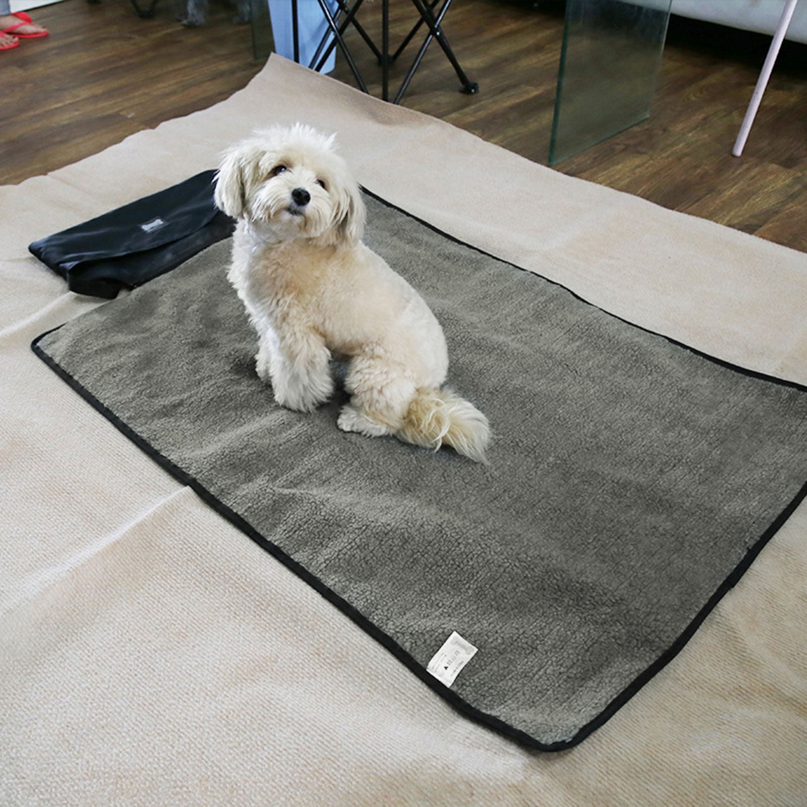This pet mat measures 39.4in by 27.6in, suitable for small medium large dogs.