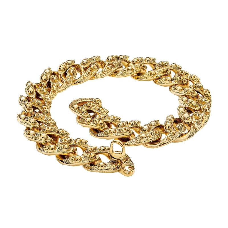 Luxury Stainless Steel Large Dog Collar 18K Gold Metal 30mm Buckle Collar with Lock Design Cuban Link Necklace Training Choke Chain Collar 14-26''