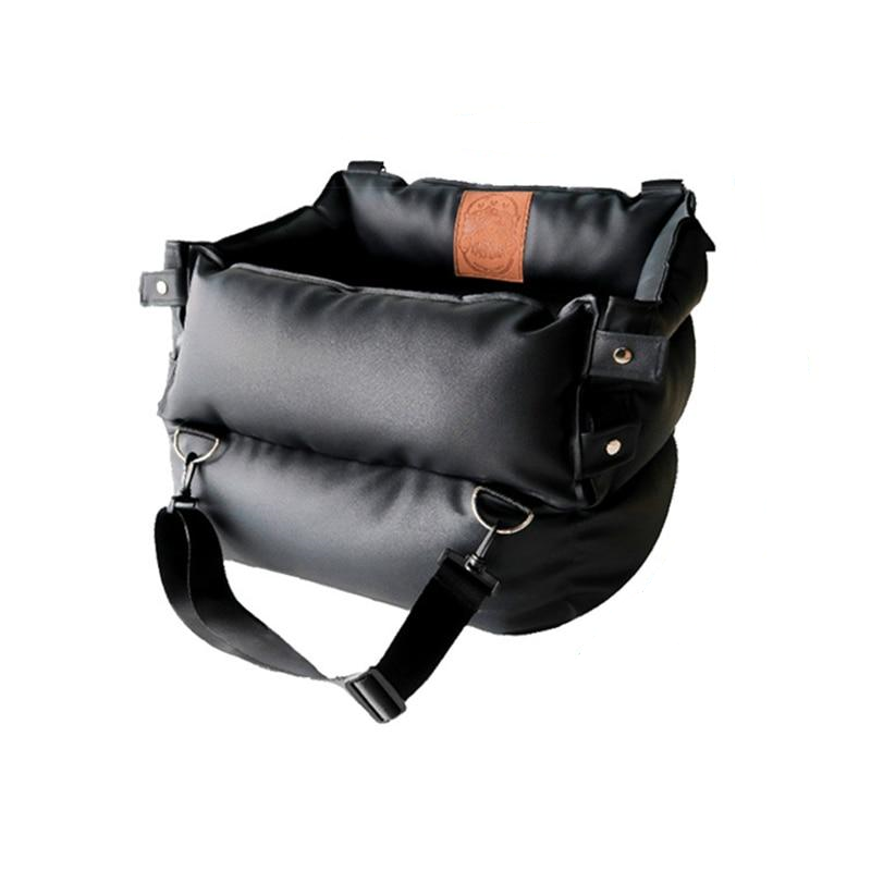 For the material,the outer leather we use is high-quality PU leather,the filling inside is pure cotton,the pet car seat is super soft,your pet will feel comfortable when they sit in it.