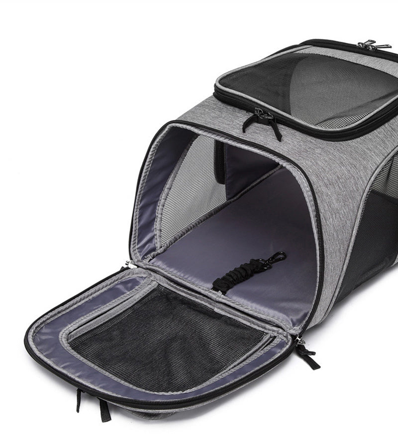 Safety Design: Equipped with a firmly reinforced structure, the dog carrier backpack is helpful to keep your friend safely inside, allowing you to focus on your trip. When you open the top to let your dog stick their head out, attach the collar to the leash tether inside can prevent your dog from running away. The bottom zipper have a lockable function, making sure your naughty friend can't open the door himself