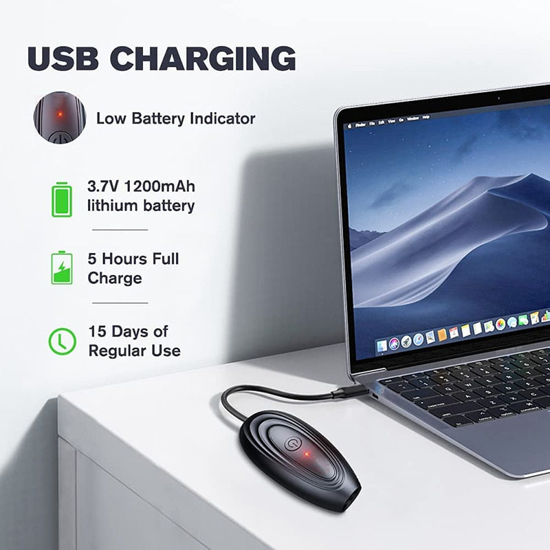 【Anti Barking Device USB Rechargeable】 Equipped with a 1200mAh large capacity rechargeable battery. This anti-barking stopper device can be charged via USB cable(included), and support a long daily-use time up to 5 months with only 5 hours of charging.