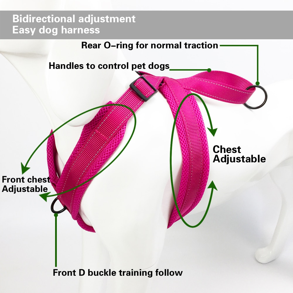 ADJUSTABLE AND REFLECTIVE STRAPS: Harness is made by reflective tape ,in the light with a reflective effect, so that more people see your dog at night, to ensure your dog safe. We have other colors for you, such as hot pink, black ,blue. You can choose according to your preference.