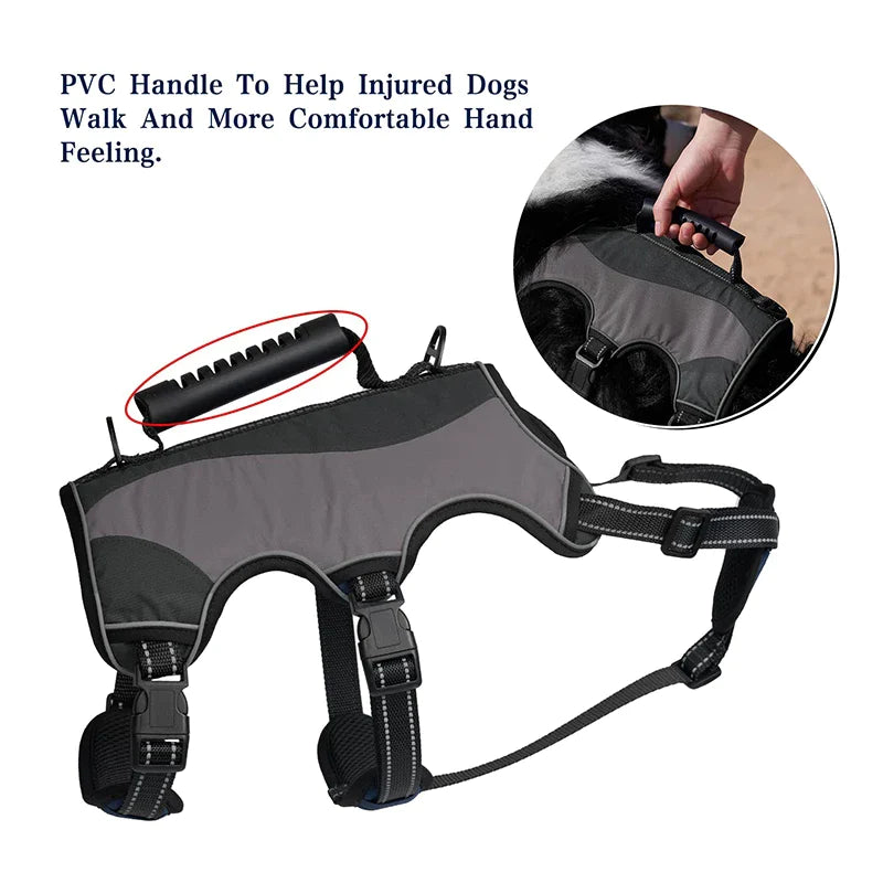 Functional: It's made of 100% Polyester, tight stitching, friendly buckles for easy on and off operation, the hook and loop straps easy use for you. PVC handle to help injured dogs walking and more comfortable hand feeling.