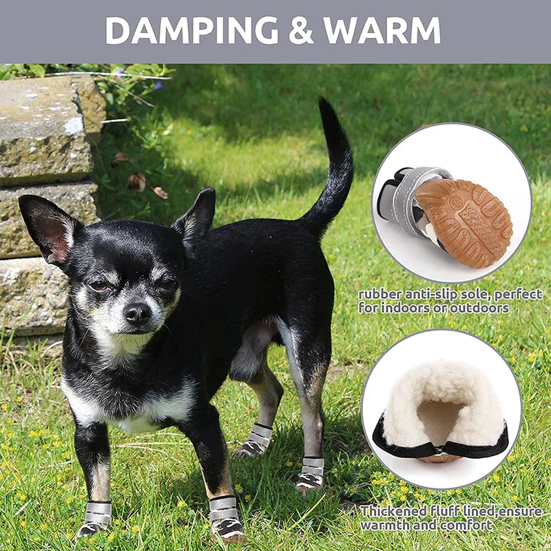【ONLY FIT SMALL DOGS】Here is 4 size snow booties for dogs. Our winter dog boots are only suitable for small dogs such as Chihuahua, Pomeranian, Bichon, Pug, Boston Terrier, Dachshund, Shih Tzu. etc. The size is the inner diameter size of the shoes. If the front and rear feet of the dog are not the same size, it is recommended to take two sizes