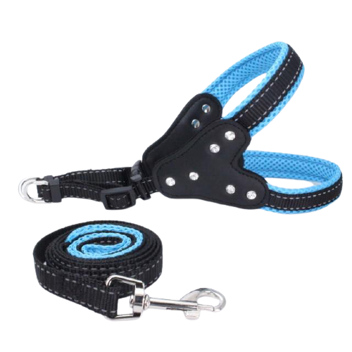 Material: Mesh harness/Rhinestones/Reflective yarn/Nylon/Leather
