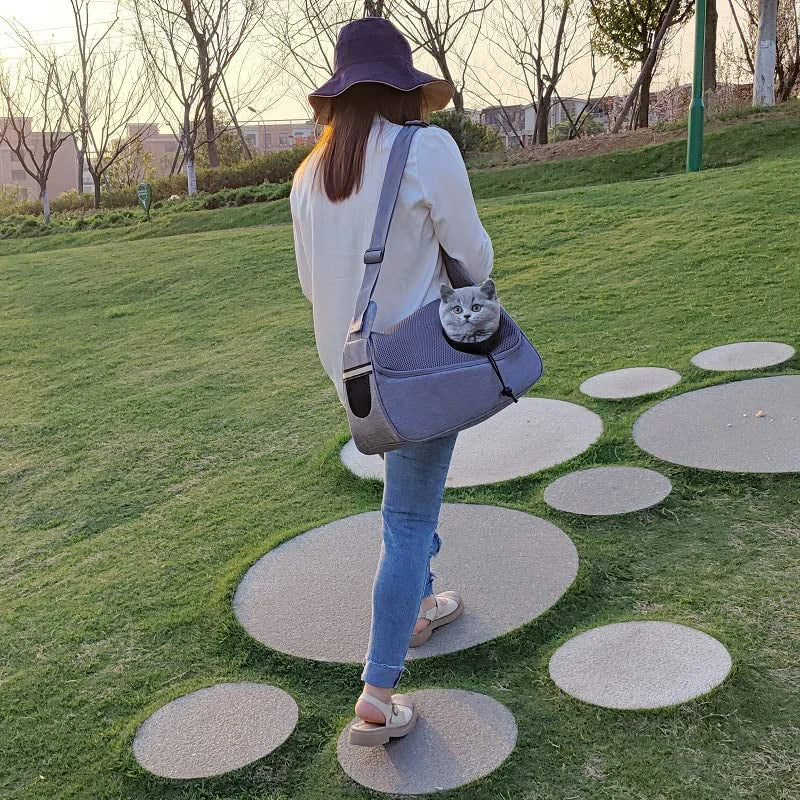 COMFY & BREATHABLE MESH FABRIC: This dog carrier sling made of durable oxford cloth (cation) and air mesh fabric material ensures good ventilation performance, and the dog and cat will not feel stuffy even if staying inside. This soft material can make the dog and cat more comfortable; the light feature also makes it more convenient for the owner to carry the dog and cat.