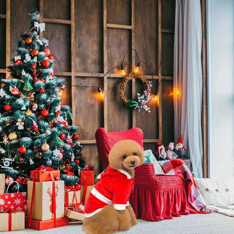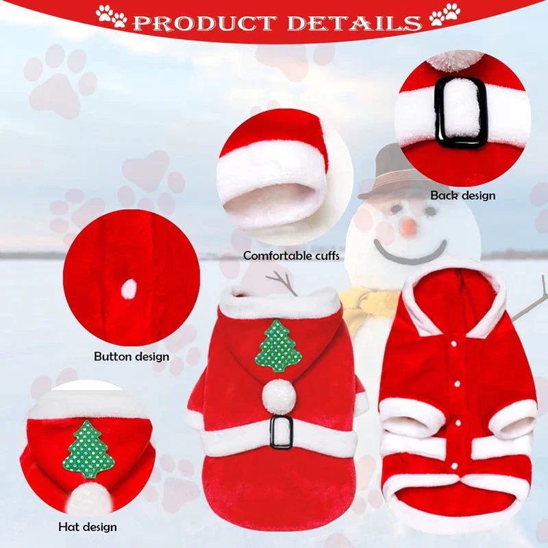 Christmas Holiday Design ☃ Dog Christmas outfit hooded clothes red coat contains 1 pack, dog clothes boy have Christmas tree. dog Christmas outfit cute and adorable cat/Halloween Christmas dog clothes for your lovely sweet pet, make your pet more attractive. wonderful to meet your pet's daily dressing needs in winter. dog Christmas outfit for an added fun atmosphere to your Christmas celebration, make your pets more lovely.Suitable for autumn and winter.