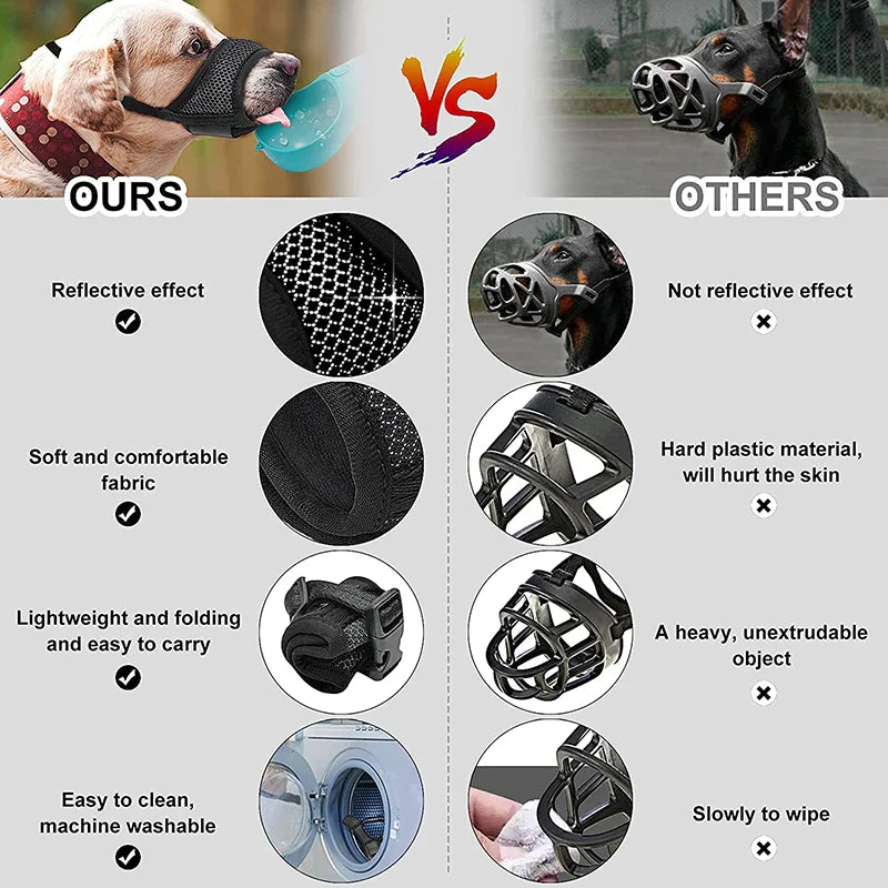 【Reflective Comfortable & Breathable Fabric】The reflective function of the mouth cover improves the safety of the dog during night activities. The soft, breathable fabric and edges will maximize the comfort of your friend without hurting his handsome face while humanely preventing him from biting, barking, chewing, licking wounds and other bad habits.