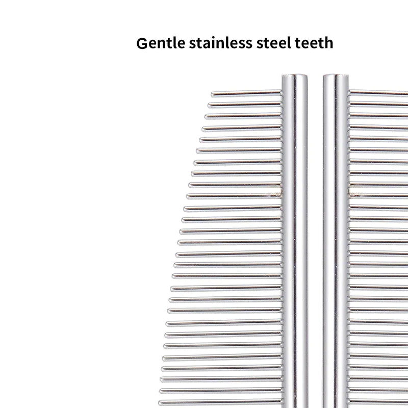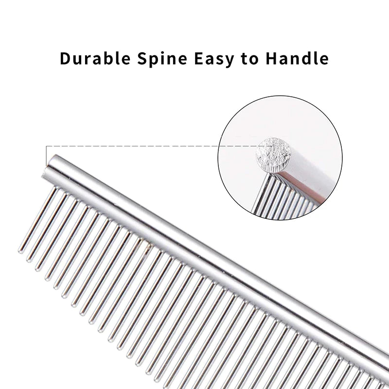 DURABLE MATERIAL --- Stainless steel comb, This heavy-duty comb with durable and polished spine and teeth, not easy to fade or deform. One comb for all cats and dogs, make a sleek coat for your pet