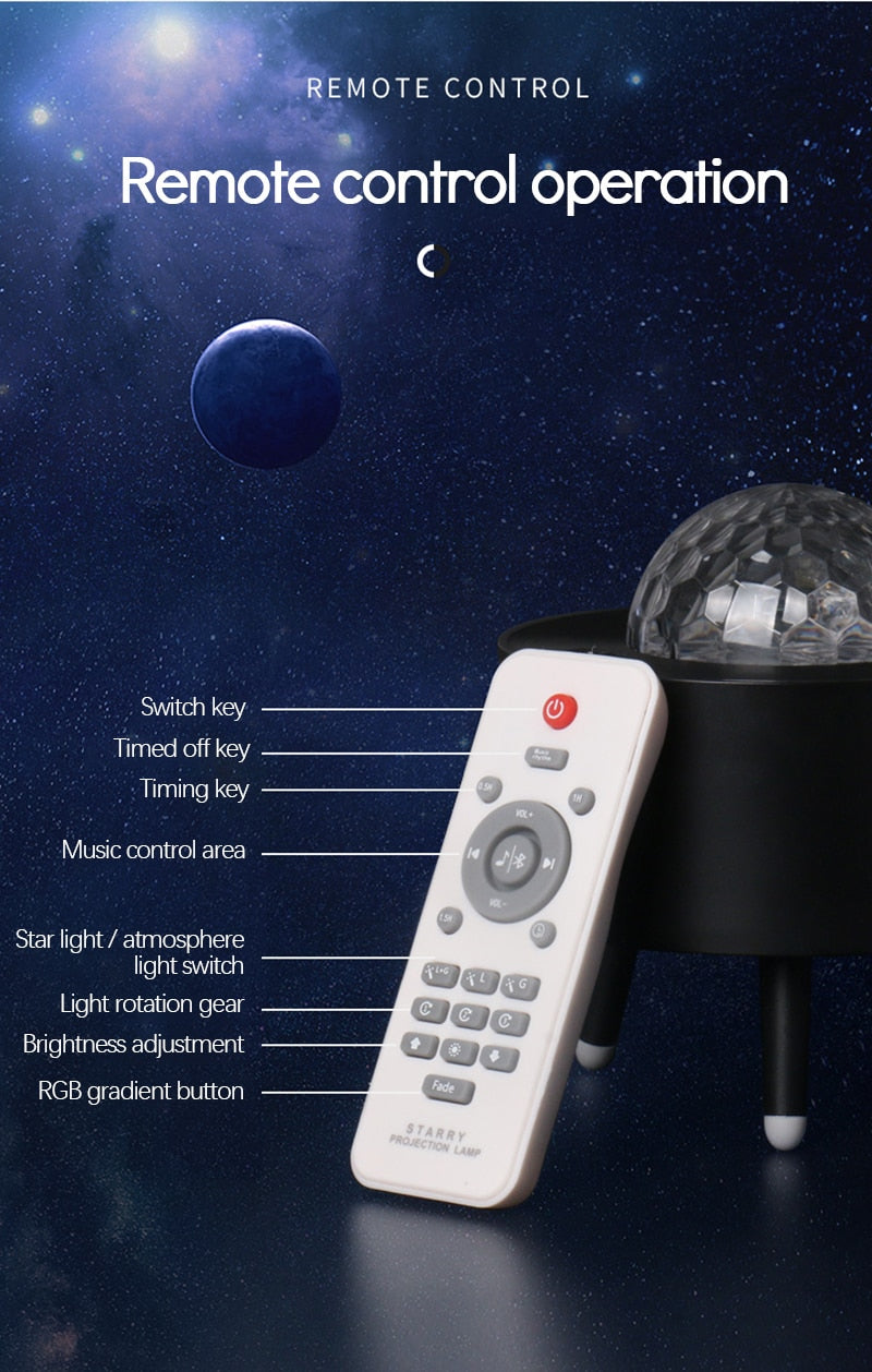 The remote control can adjust the light color, light change speed, light mode, Bluetooth mode, brightness, music control, voice control, selection mode, timing function, switch.