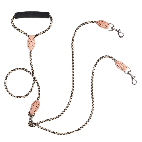 【Double Leash for Dogs】Double dog leash coupler is a multi-function dog leash designed for two dog owners, Our leash is the perfect solution to walking two dogs together on one leash. The soft rope handle is comfortable, even after a long walk with two dogs! Each nylon rope is attached with a D-shaped rotating buckle, which is suitable for stable connection with a dog harness or dog collar.