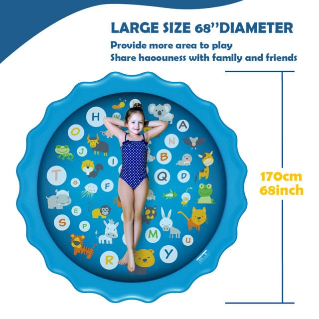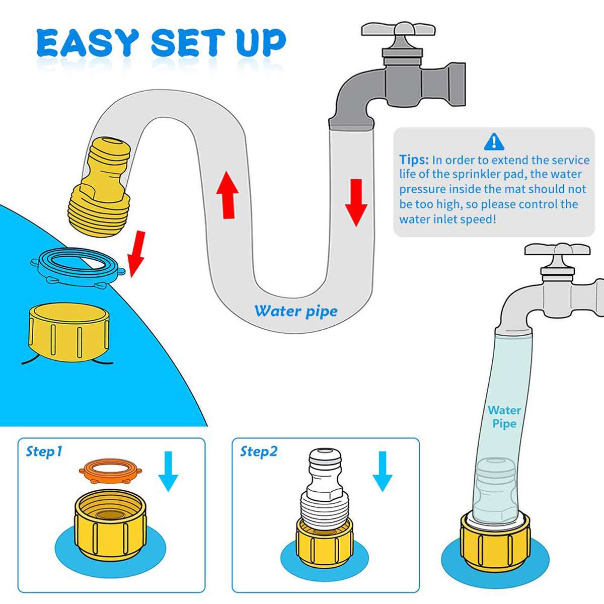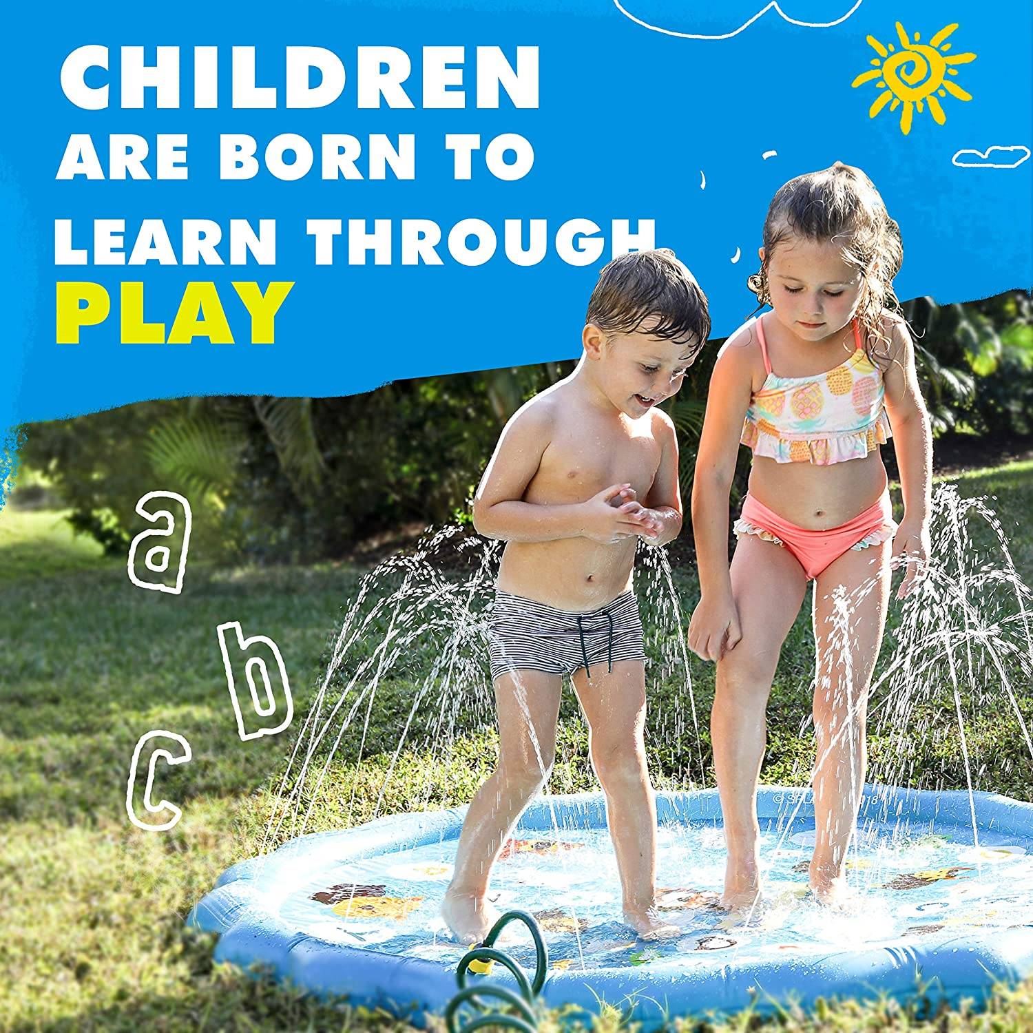 GOOD QUALITY SPRINKLER PLAY MAT – The sprinkler pad is made of durable, soft and heavy- duty 2.5mm PVC material, non-toxic. For Ages 18 months and up.