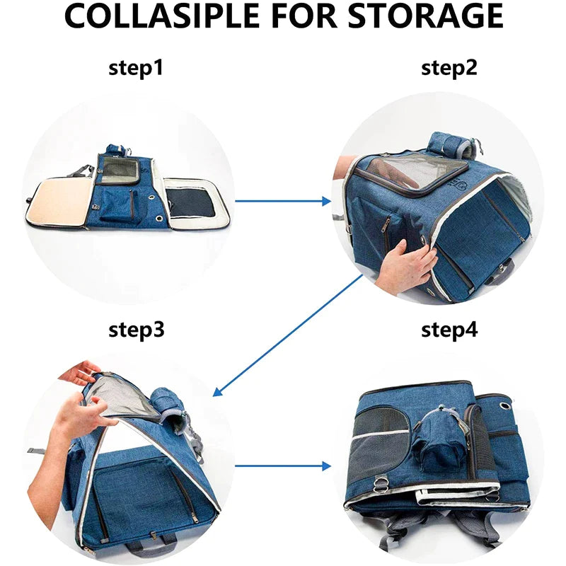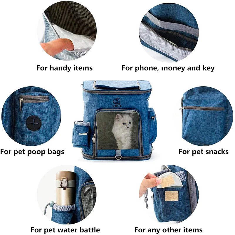 CONVENIENCE--More pockets for a pet water bottle, pet poop bags, pet snacks, or any other items will free your hands when having a travel