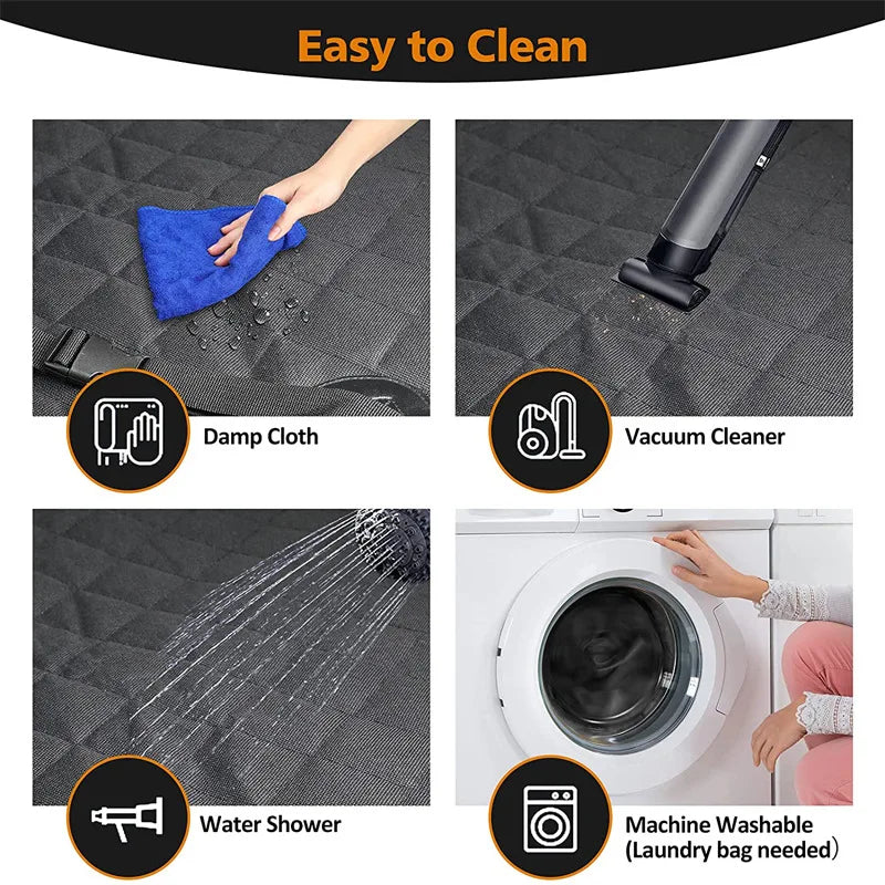 4. Stay Safe - To ensure your dog's safety, our dog's rear seat cover is held in place by four headrest leashes, an anti-skid pad, and two devices attached to the seat. Thus, the shield prevents the dog from slipping each time the brakes are applied. Two openings can be inserted into the dog's seat belt to prevent injury in the event of an emergency bark or sharp turn. Our dog car seat covers provide free seat belts for dogs.