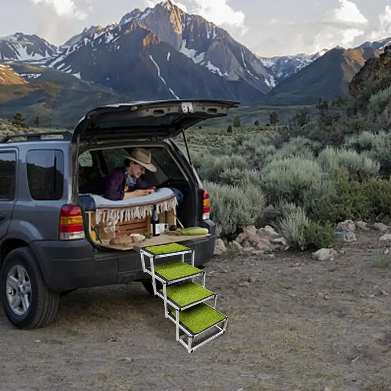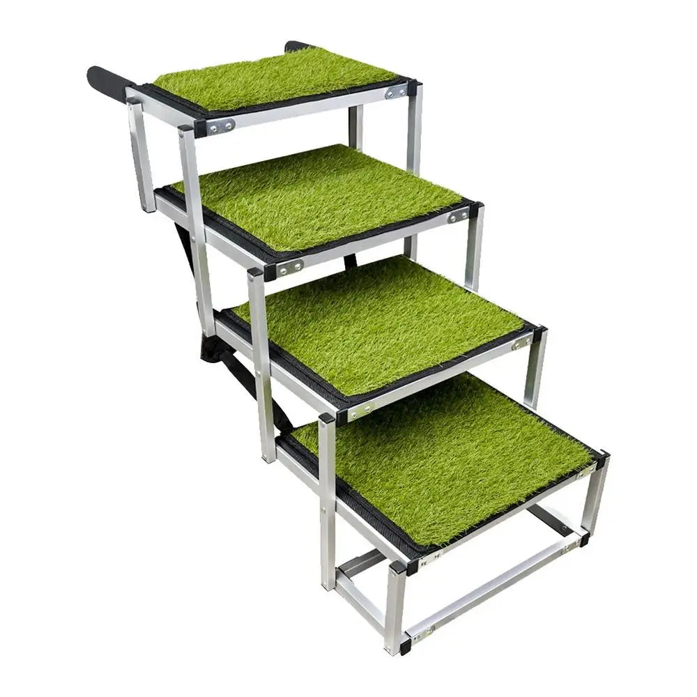 2. Secure and Gentle Artificial Grass: The artificial grass that covers our dog stairs provides your dog a reliable and smooth surface to walk on, avoiding any accidents or injuries. The grass also pampers your dog's paws with a soft and plush feel, adding to their happiness and satisfaction.