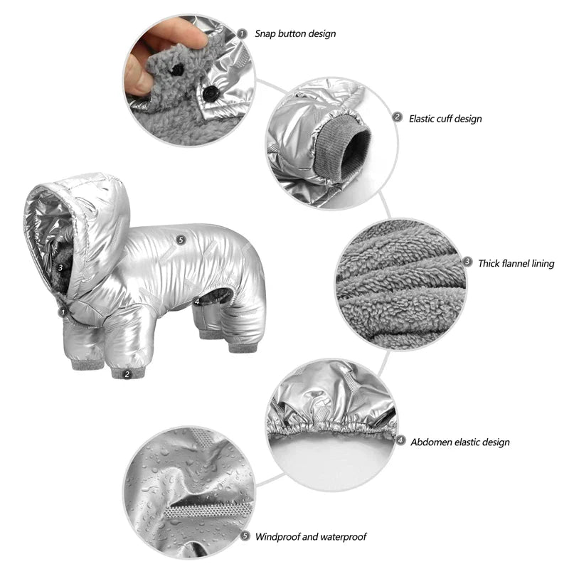 【Button Closure Design】-- The solid color warm dog down jackets with elastic cuff and elastic four-leg style, snap button design of pet jacket, very easy to put on and take off.